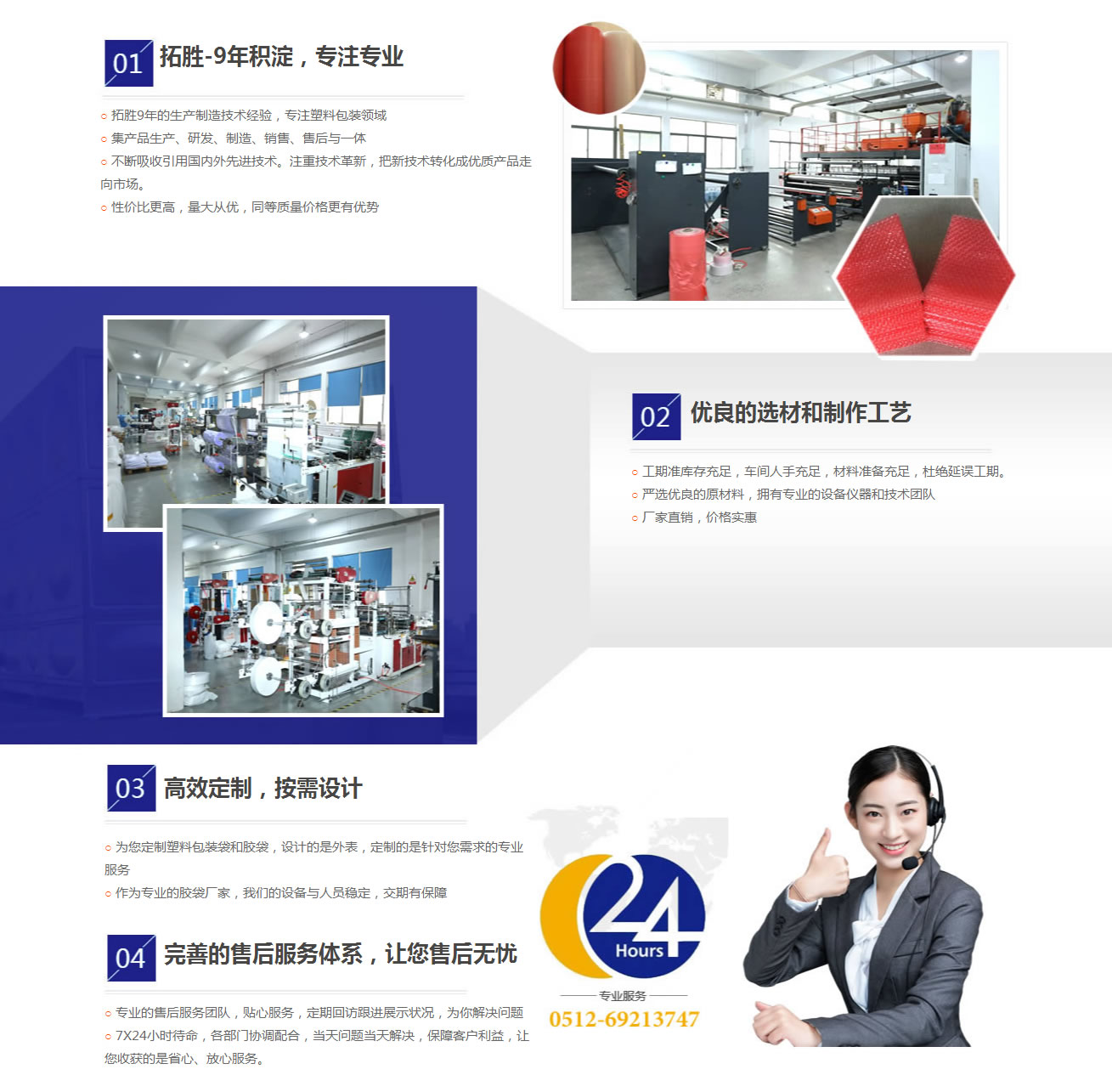 蘇州拓勝(shèng)包裝材料(liao)有限公司(si)于2012年在蘇(su)州投資的(de)‼️生産、經營(ying)🤞聚乙烯爲(wèi)原材料的(de)包裝制品(pǐn)民營企業(ye)。公司占地(di)✨面積6000多平(ping)👨❤国产91av🔞视频🚩️👨方米,在職(zhí)員工70餘人(rén),其中塑料(liào)包裝袋設(she)計研發工(gōng)程師、專業(ye)技術及管(guan)理人員10人(ren),企業實行(háng)ISO9001質量體系(xi)管理。